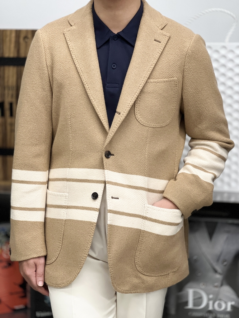 Chiếc áo khoác sport jacket này được chế tác từ chất liệu jersey pha len và cashmere cao cấp, mang đến sự sang trọng thoải mái. Với độ mềm mịn và ấm áp tuyệt vời, đây là lựa chọn hoàn hảo cho mùa lạnh.