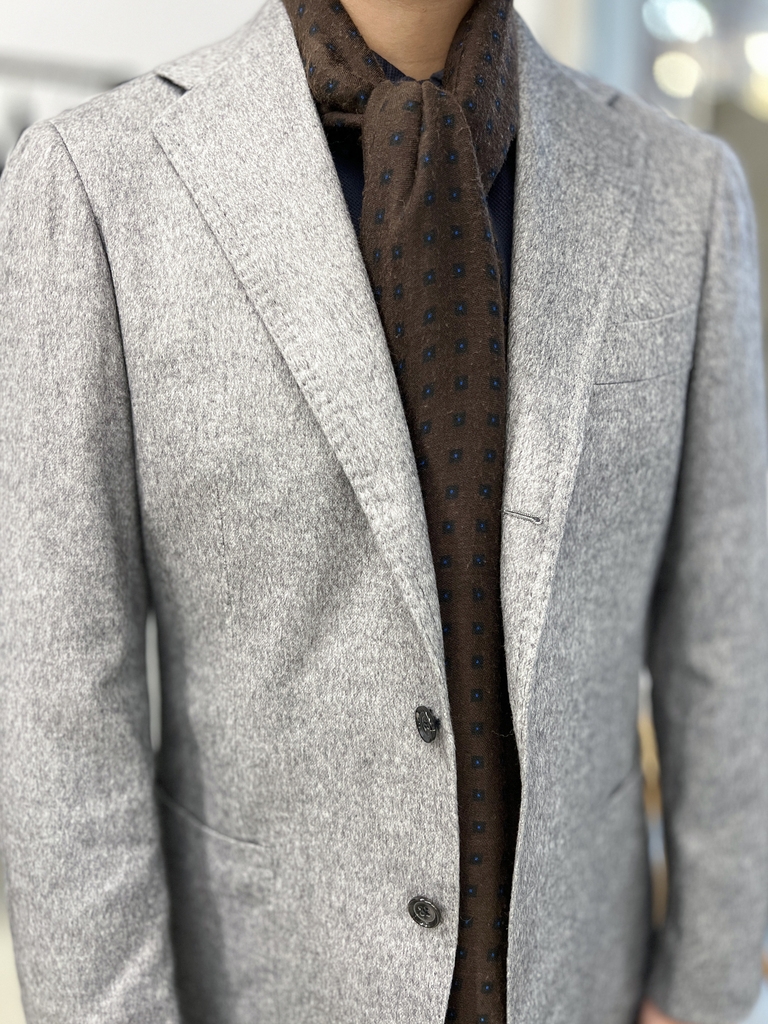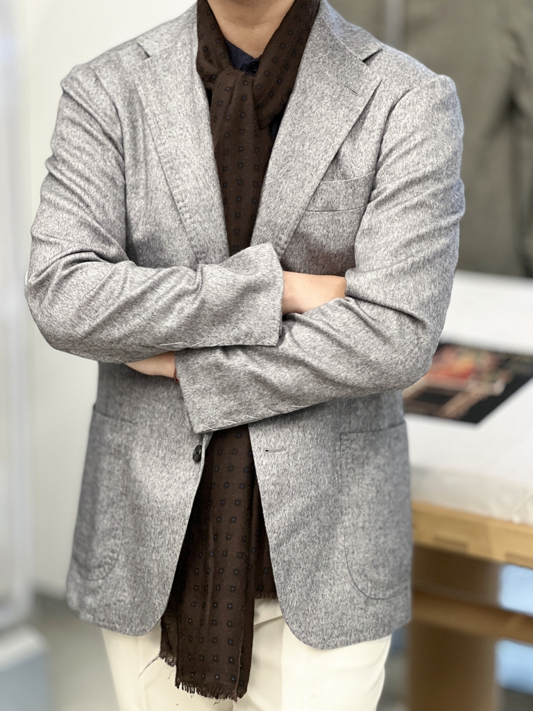 Chiếc áo khoác thể thao màu xám nhạt này được chế tác từ vải lụa và cashmere thượng hạng của Piacenza, là đỉnh cao của sự xa xỉ, thích hợp cho mùa lạnh.