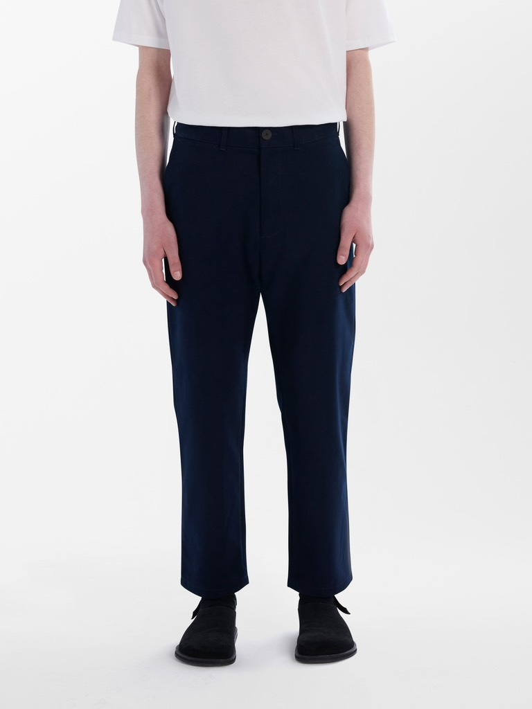 - Ống đứng. - Túi trước: 2 túi xéo; túi sau: 2 túi đắp. - Có đỉa quần.
