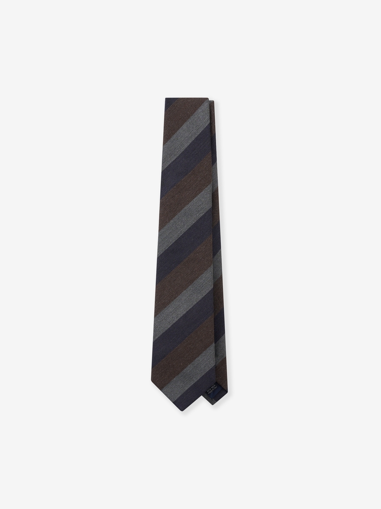 Navy/Brown/Grey Block Stripe Silk Tie