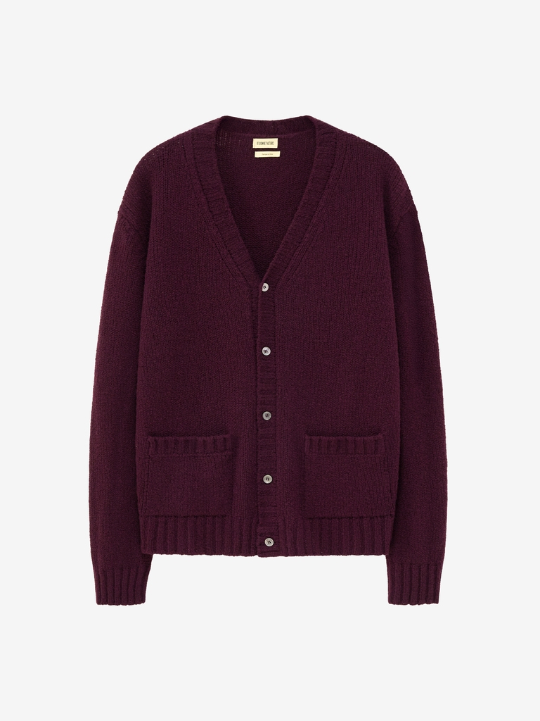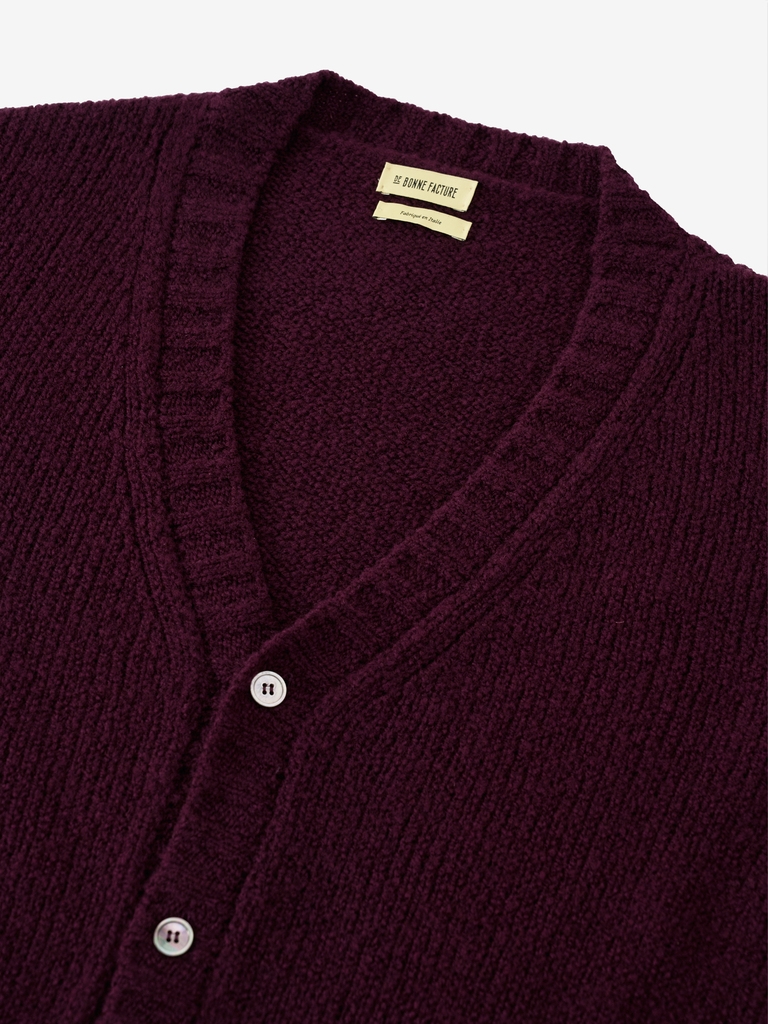 Plum Boucle Wool Student Cardigan