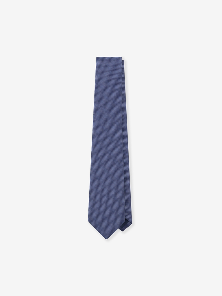 Slate Blue Grid Check Silk Tie