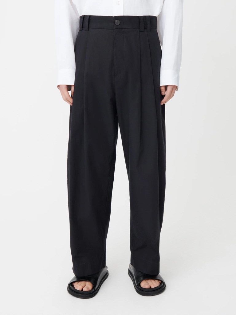 Quần Yale có thiết kế xếp ly đôi, dáng rộng và nhiều nếp gấp, mang đến sự tinh tế thoải mái. Phiên bản này được làm từ powder-cotton, một chất liệu chủ lực của SN.